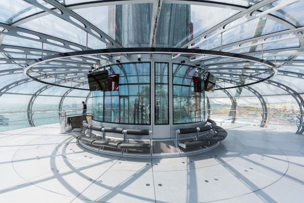 All this was conceived and designed by Marks Barfield Architects, the people behind the slightly less high London Eye, and is something of an engineering feat. Described as the world’s first vertical cable car and slenderest tower (because it’s about 40 times as high as it is wide), it gets customers up to 450 feet on each 20-minute “flight” − 30 minutes after 6pm. The whole lot weights 1350 tons.