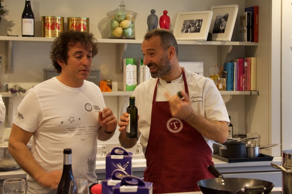A group of us met them in the kitchen of a private house and we started by hearing about the history of the Palazzo and of Marco’s involvement in Italian cuisine. He started by telling us about his vineyard where he produces six bio-dynamic wines made from local grape varietals rather than international cultuvars like merlot and chardonnay. From his olive grove he also produces organic oil, As he spoke it was evident that for Marco ingredients with a good provenance both his own and from his suppliers are essential to the creation of great food.