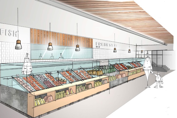 Ichiba will offer a contemporary twist on traditional Japanese elements with in-store surroundings to support the quality of the food. Japanese style paper structures, flags and traditional fabrics will break up the space, while lights inspired by chopsticks, lanterns and traditional wooden elements will help customers navigate the zones of the store. Food stations will offer everything from katsu curries to sushi and sashimi and authentic street food including takoyaki, tempura and noodles made fresh to order.