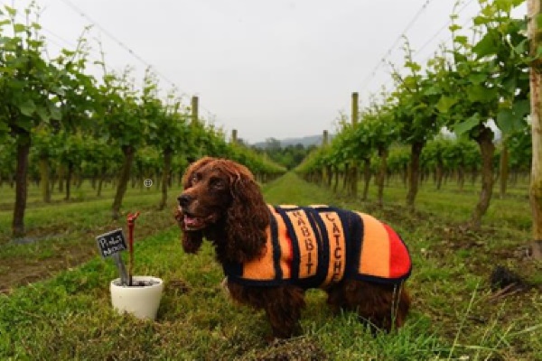 Bertie the dog has been hired by Hampshire’s Jenkyn Place Vineyard to rid its beautiful vineyards of rabbits