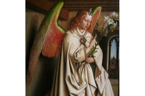 I recently went to Ghent to experience the events that are being staged during 2020, starting at MSK, the Museum of Fine Art. The museum has created a new exhibition, Van Eyck, an Optical Revolution. This is a curation of many aspects of the artist’s works with a myriad of surprises for art lovers. With half of Van Eyck’s existing paintings on show, each of the 13 galleries has at least one keynote work exhibited. On display are the yet to be restored altarpiece panels, Adam and Eve, paintings of the sponsors, Joost and Elisabeth, the Annunciation a rear panel, the Turin-Milan Book of Hours showing Van Eyck’s work as a miniaturist and the newly restored Portrait of a Man from the UK’s National Gallery. There are other works, including copies of the altarpiece panels by 16th-century artist Michiel Coxcie.