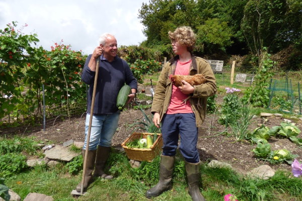 Four months later and the garden is flourishing. There has been a glut of peas, radish, chillies, courgettes, you name it. Elderflower cordial has been bottled, cucumber and dill have been pickled, preserved and stored for the winter. Father and son have brought in 10,000 bees and hives, soon there will be honey.