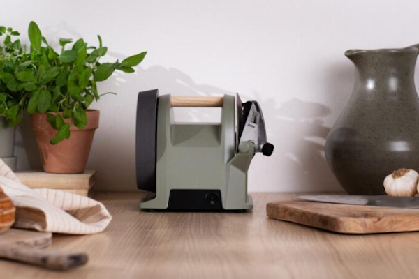 Tormek brings over 50 years of expertise in tool sharpening for woodworkers and more than 35 years in knife sharpening for commercial kitchens. The sleek, Scandinavian design of the Tormek T-1 Kitchen Knife Sharpener comes fully assembled, featuring a solid handle, diamond grinding wheel, composite honing wheel and a powder-coated zinc body in Carbon Black, Zinc Gray and NEW ASH GREEN. The tone is a subtle, muted green, for a soft, sophisticated feel. It sits between sage and moss on the colour spectrum, but with a duskier, more neutral quality. It’s a calm, understated shade – perfect for creating a tranquil and timeless aesthetic complementing every kitchen style.