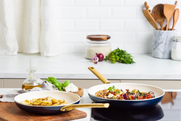 The 5 and 2-piece pan sets have a state-of-the-art PFAS-free Thermolon™ ceramic non-stick coating with durable, stay-cool handles oven safe up to 160°C. Made from 65% recycled aluminium and suitable for all hobs, the GreenPan New Essence Range comes with Magneto™ induction technology. This means that the bottom of the pan is coated with ferromagnetic particles to enhance performance on induction cooktops ensuring even heat distribution while also improving durability and preventing warping.
