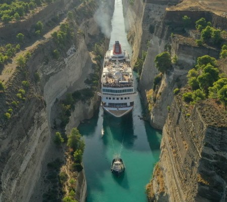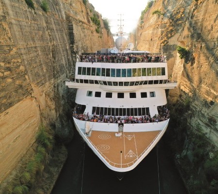 Fred. Olsen Cruise Lines’ guests experience record-breaking transit of historic Corinth Canal on largest-ever ship Braemar